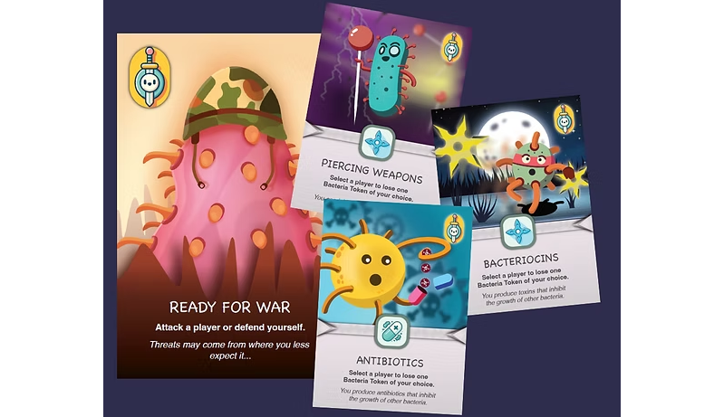 In Bacttle, A unique educational board game, you become a living species fighting to grow, adapt, and out-smart everything the environment throws at you. Strategy meets science in a fast-paced game where every turn could mean survival… or extinction.